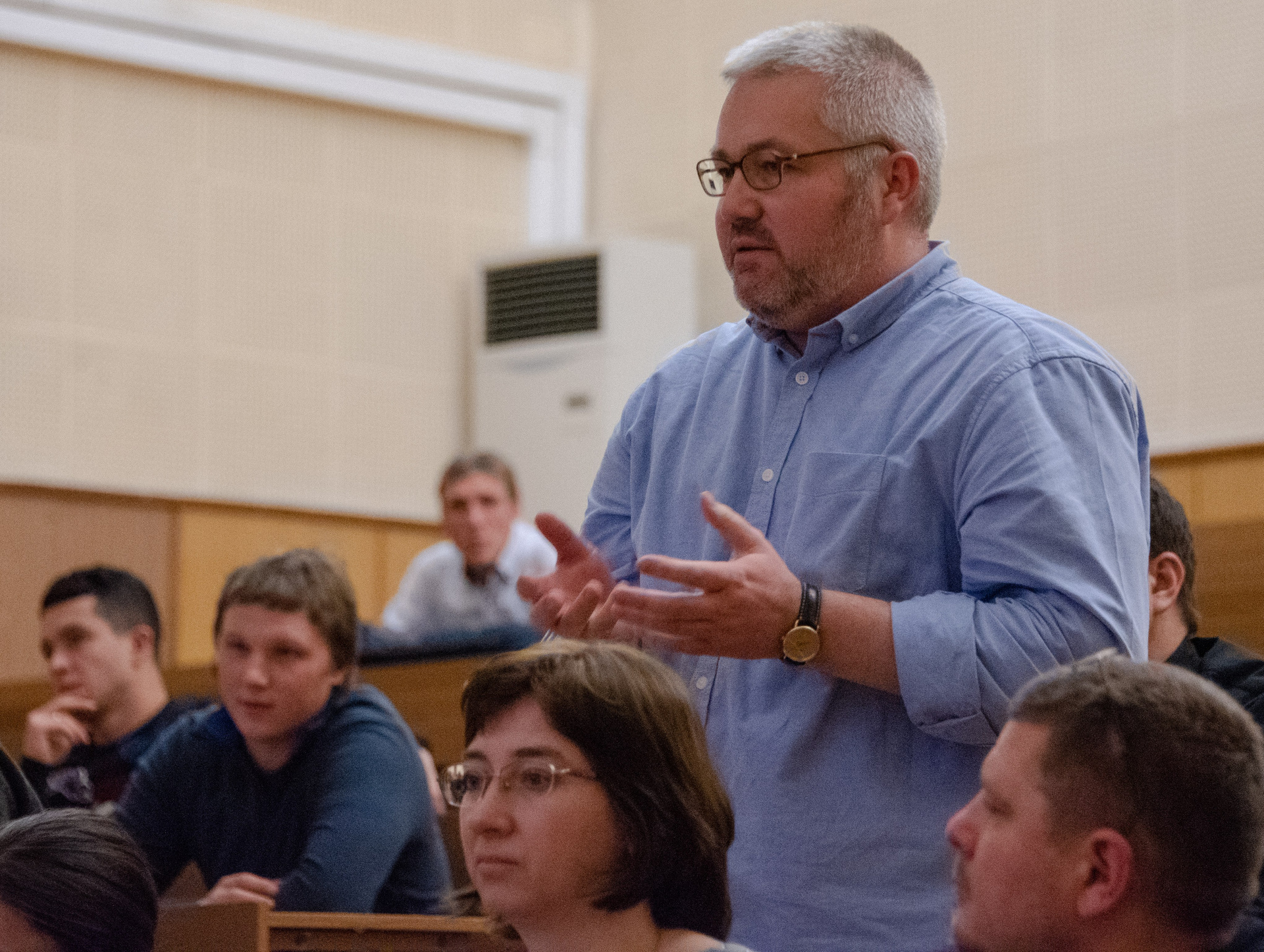 16 ноября 2018 г. в рамках открытого лектория по фотожурналистике на факультете журналистики состоялась лекция фотографа Игоря Палкина, заведующего фотослужбой Патриарха Московского и всея Руси, клирика храма св. мц. Татианы при МГУ.